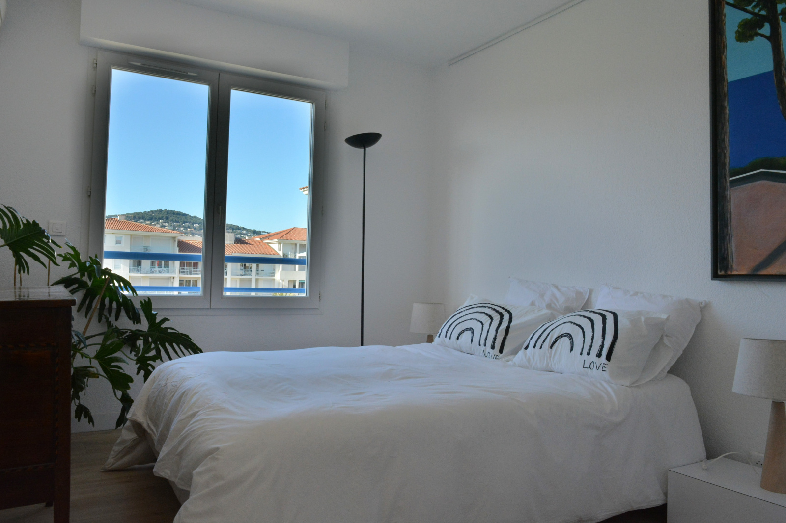 une chambre de 12 m² avec rangement et vue dégagée sur la colline de Cannes,