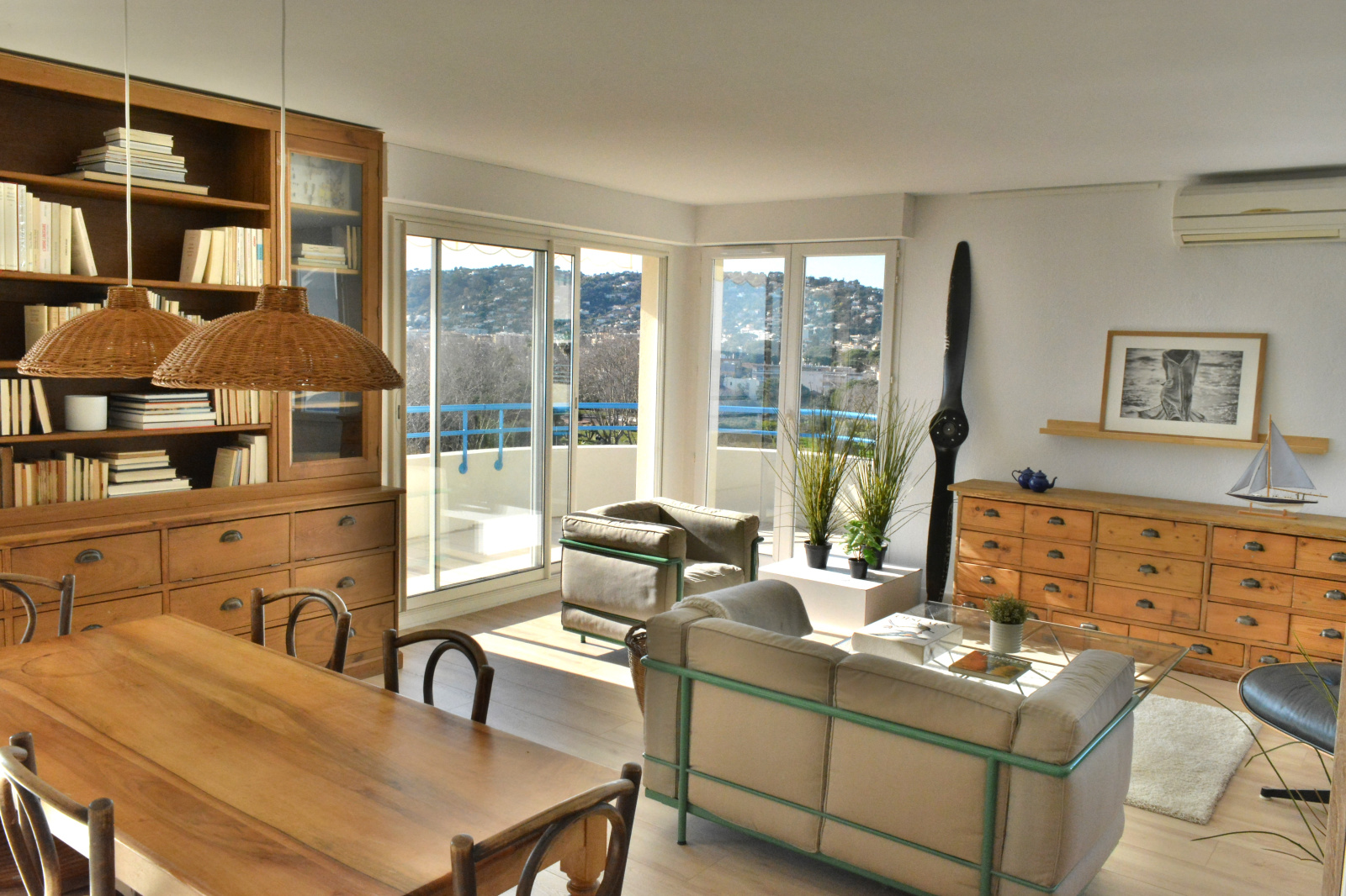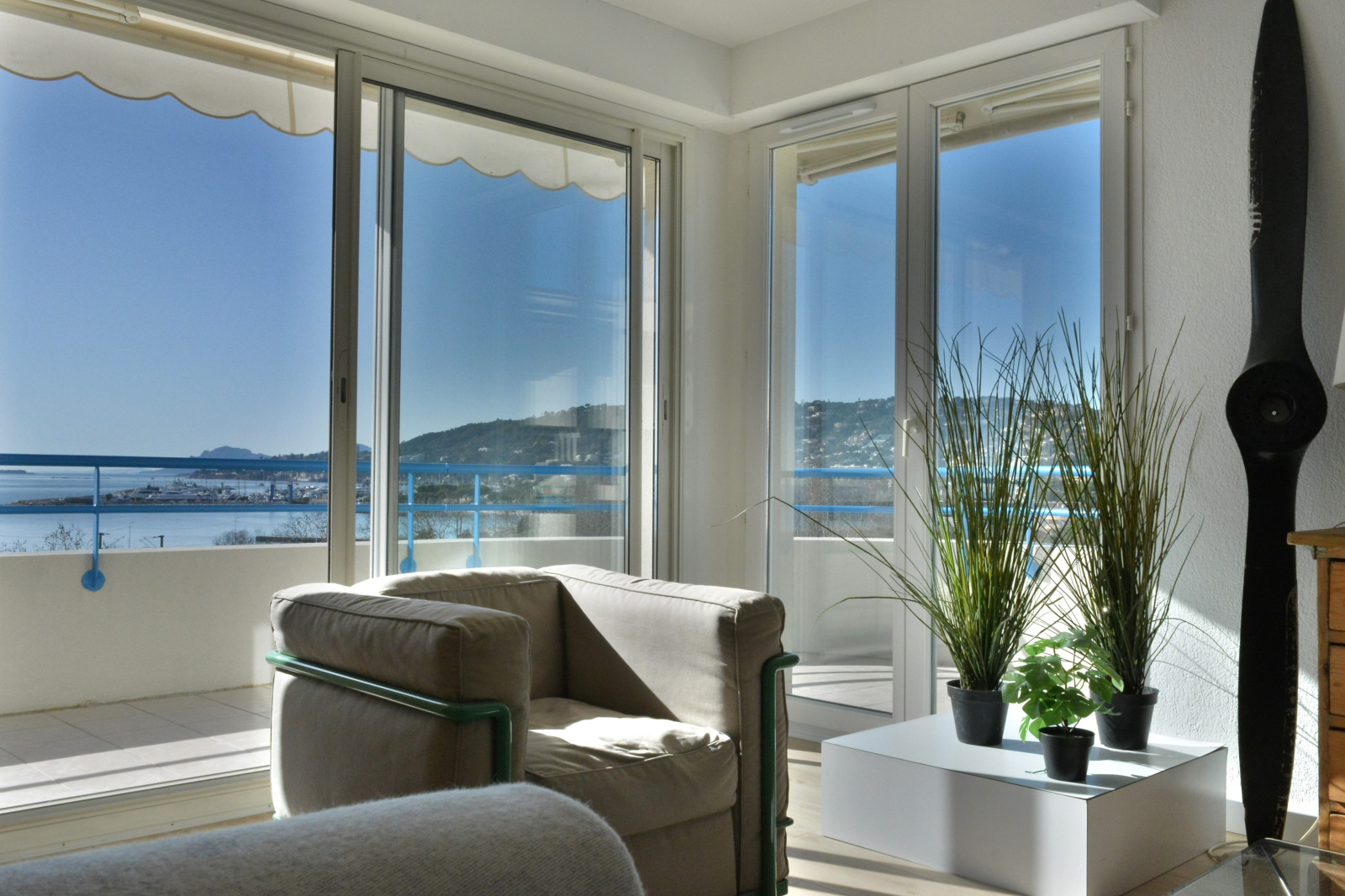 Il est composé d'un vaste séjour cuisine US de 45m² donnant sur belle terrasse plein Sud avec vue mer a 180°,