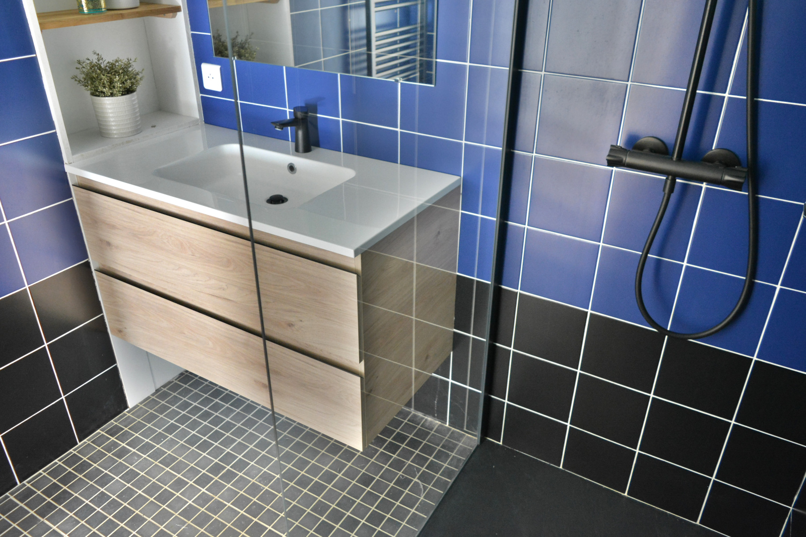 salle d'eau avec douche à l'italienne et un wc séparé.