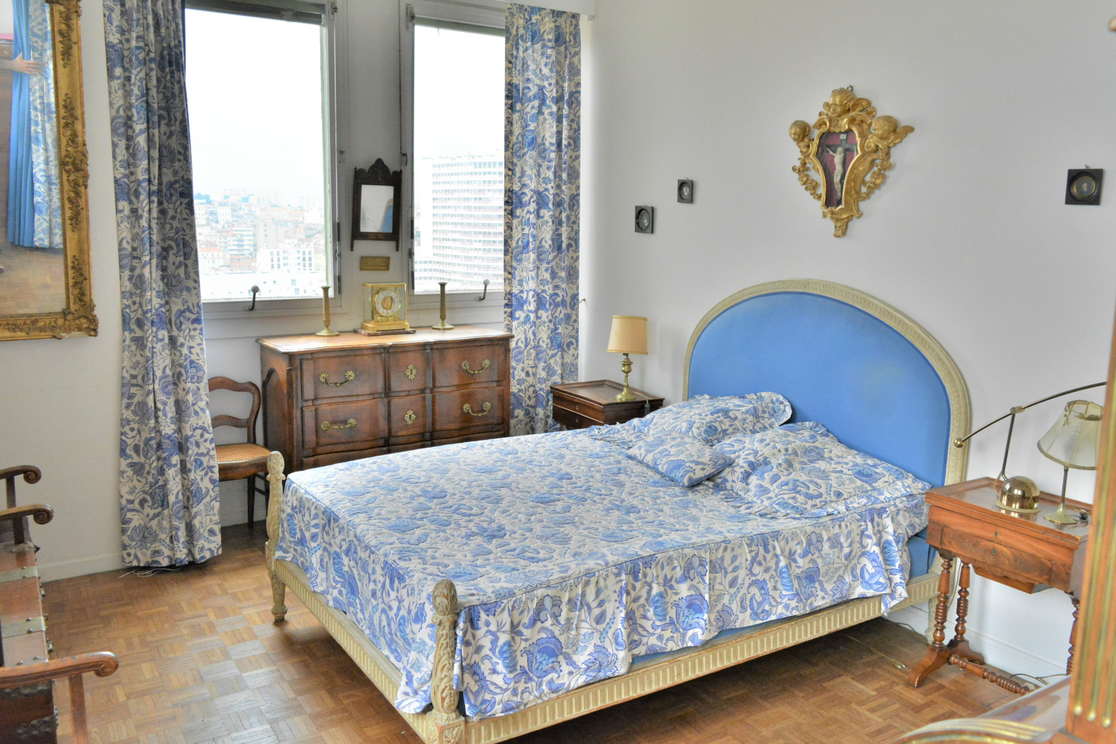 Côté nuit, 3 chambres de 9 /10 et 14 m² avec vue époustouflante sur le Vieux Port et la ville , Une salle de bain et un wc séparé.