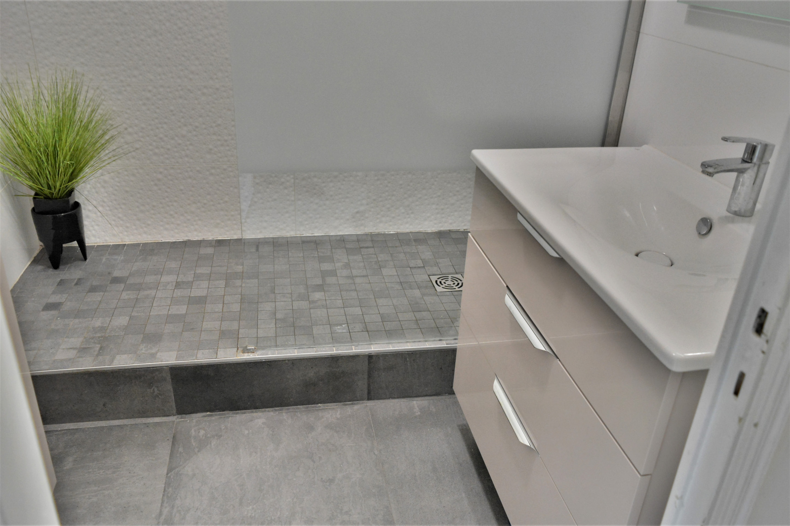 une salle d'eau avec douche à l'italienne et un wc séparé.