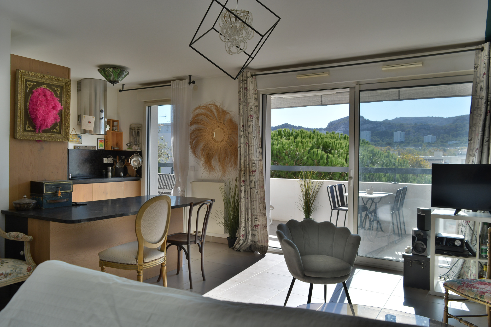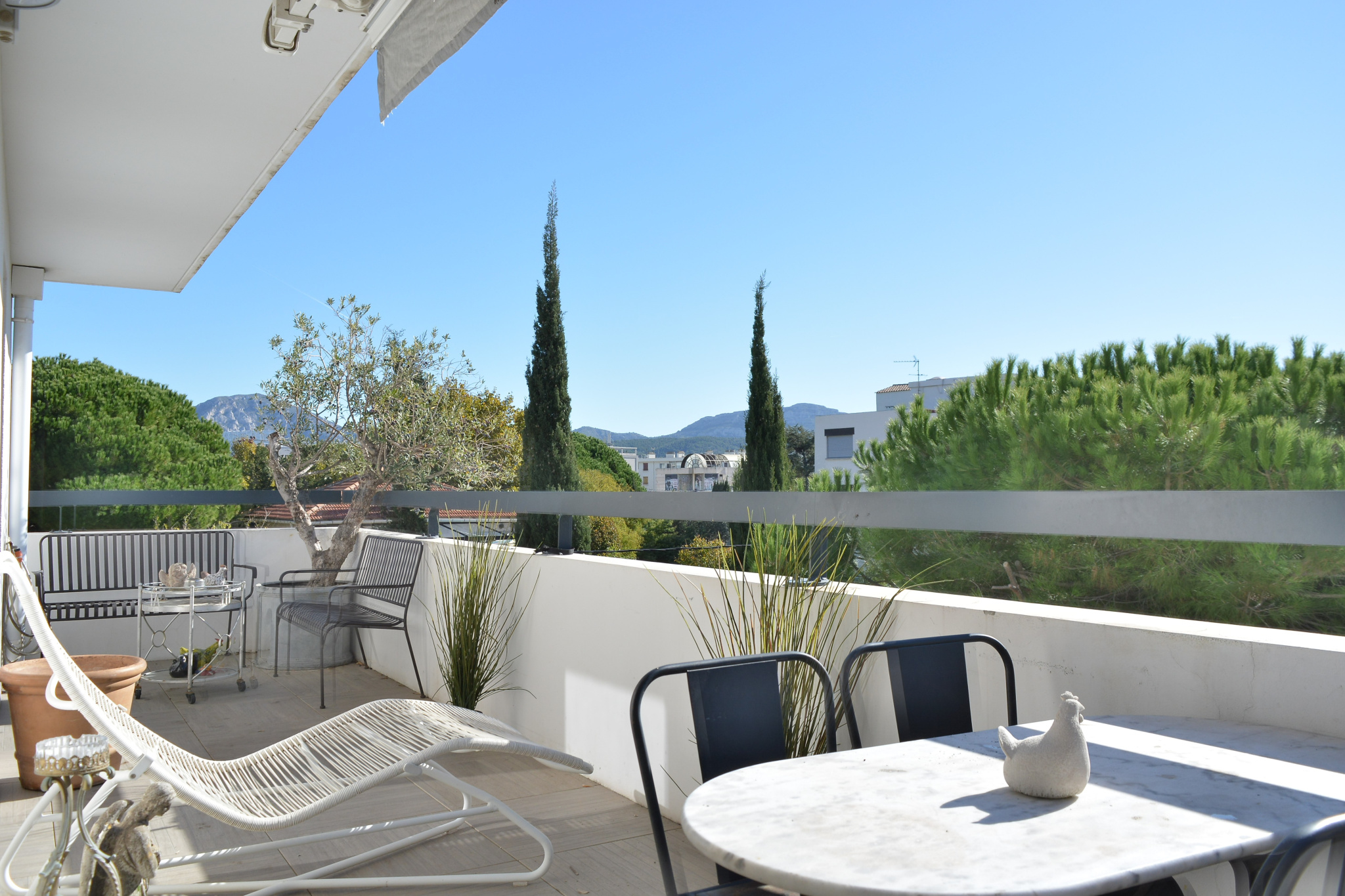 avec vue dégagée sur les Collines du Parc national des Calanques.