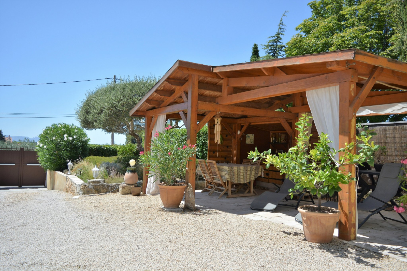 Le Rdc est composé d’un vaste séjour salle à manger de 52 m² plein Sud avec vue dégagée, poutres apparentes et une belle cheminée en pierre de Rognes,