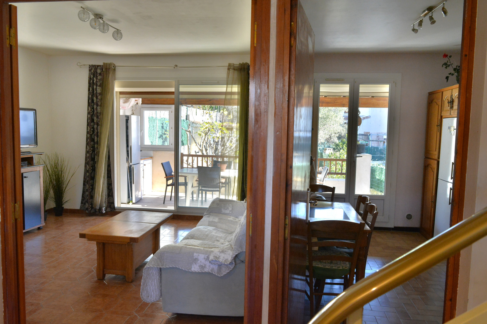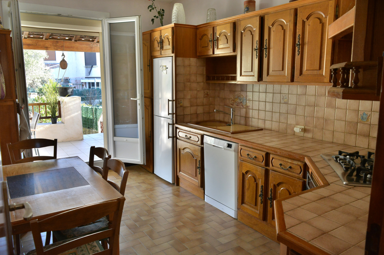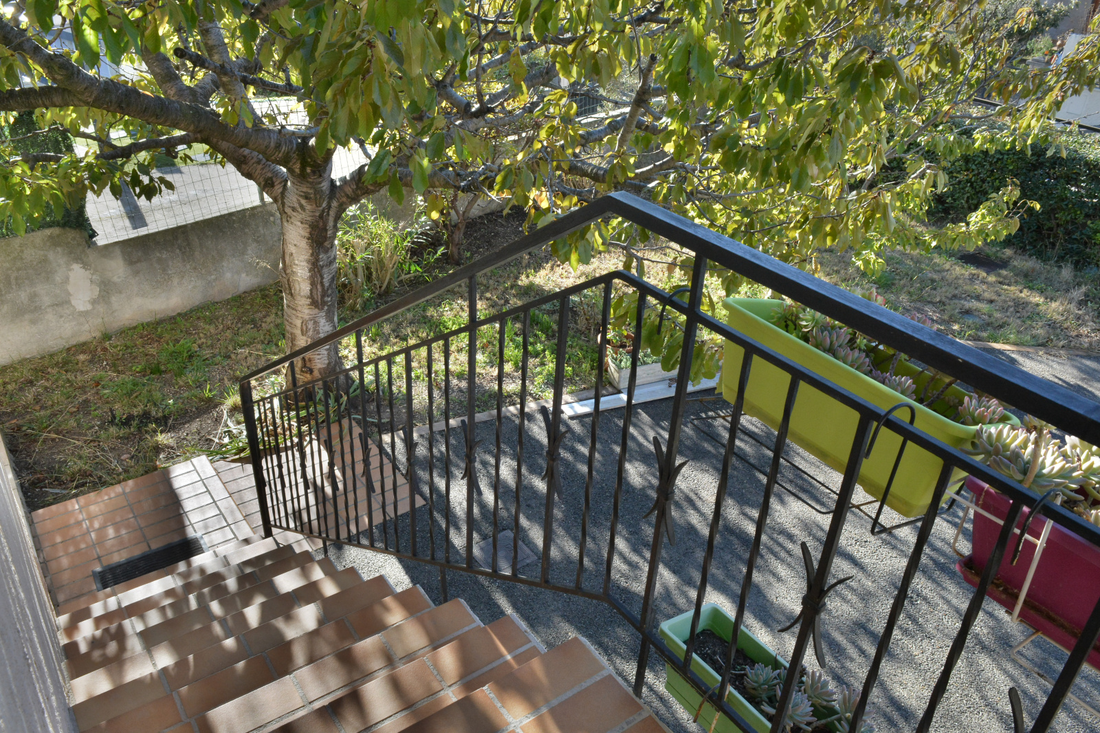 avec accés au jardin arboré de 80m² et sa cuisine d'été, une grande cuisine séparée et une salle d'eau avec wc compléte le palier.