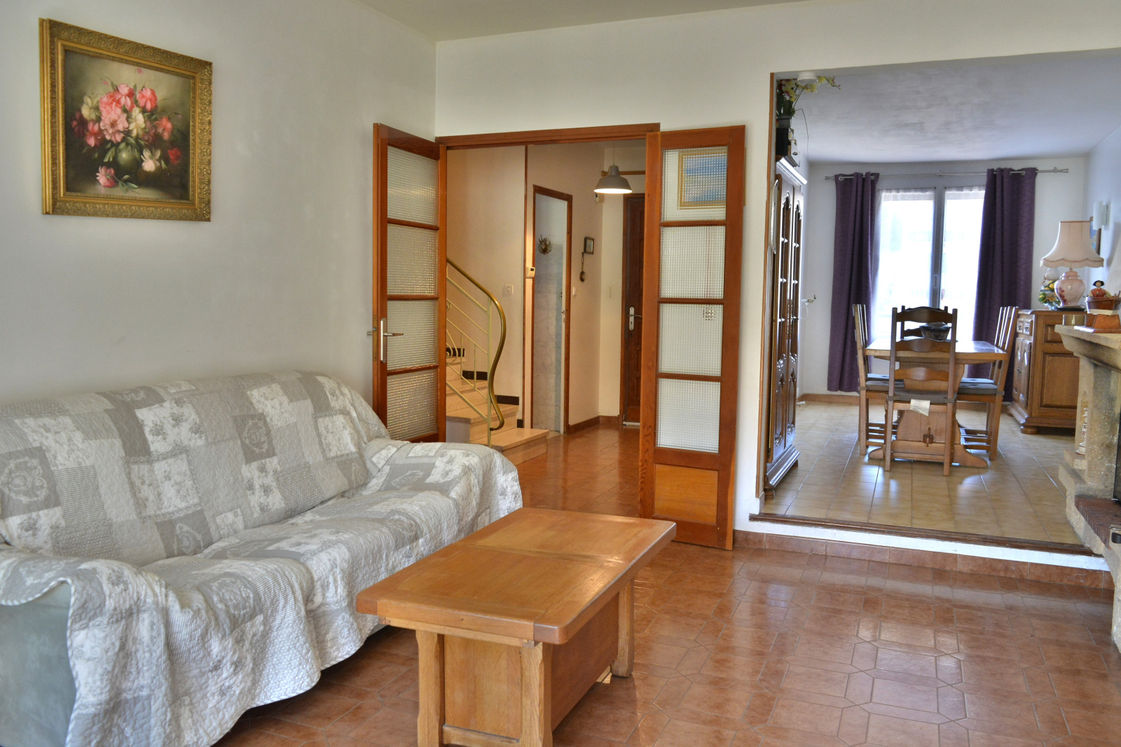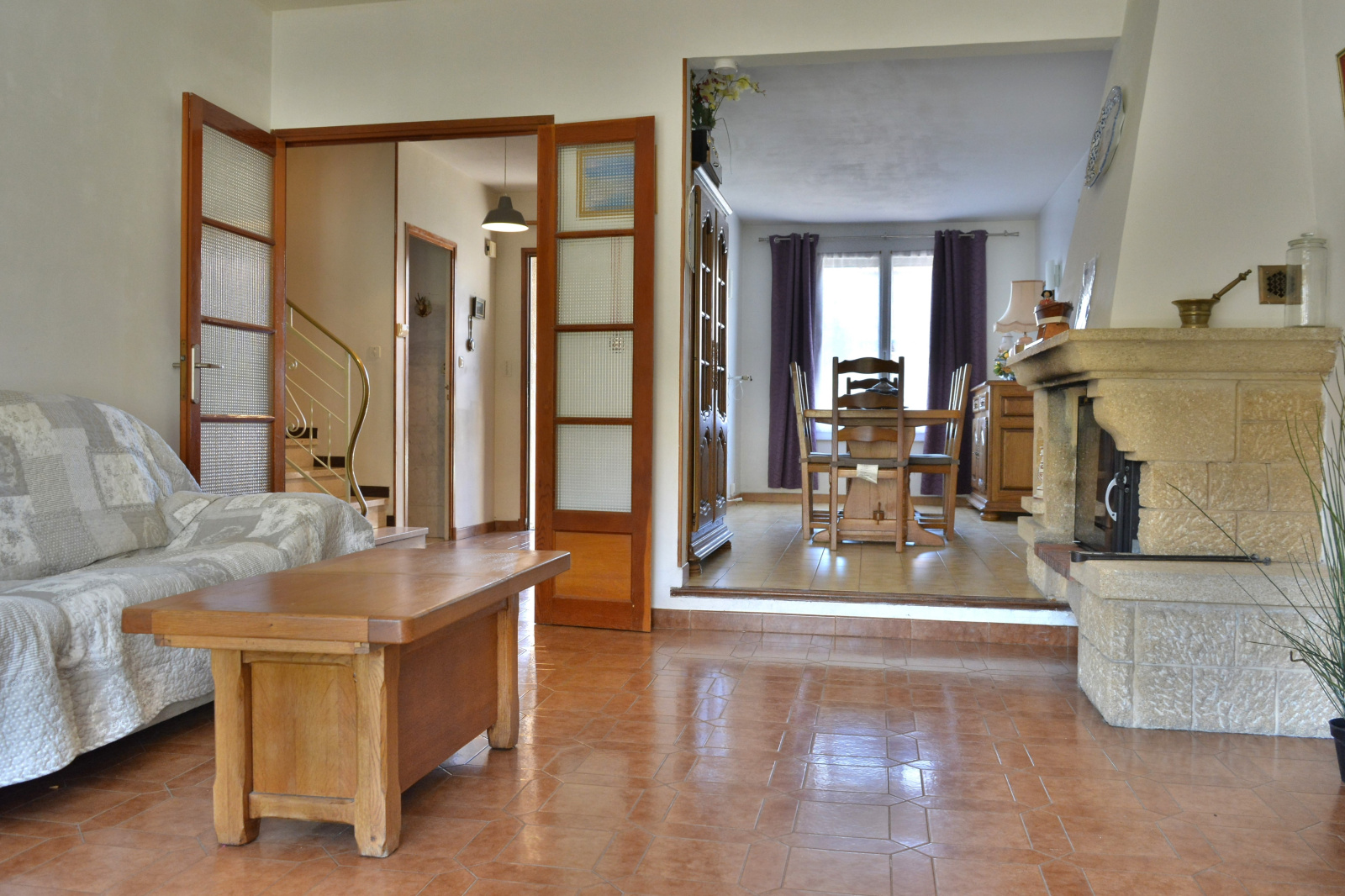 Maison trés agréable, lumineuse, traversante Sud - Est / Nord - Ouest avec double vitrage, volets roulants, chauffage individuel au gaz ,
