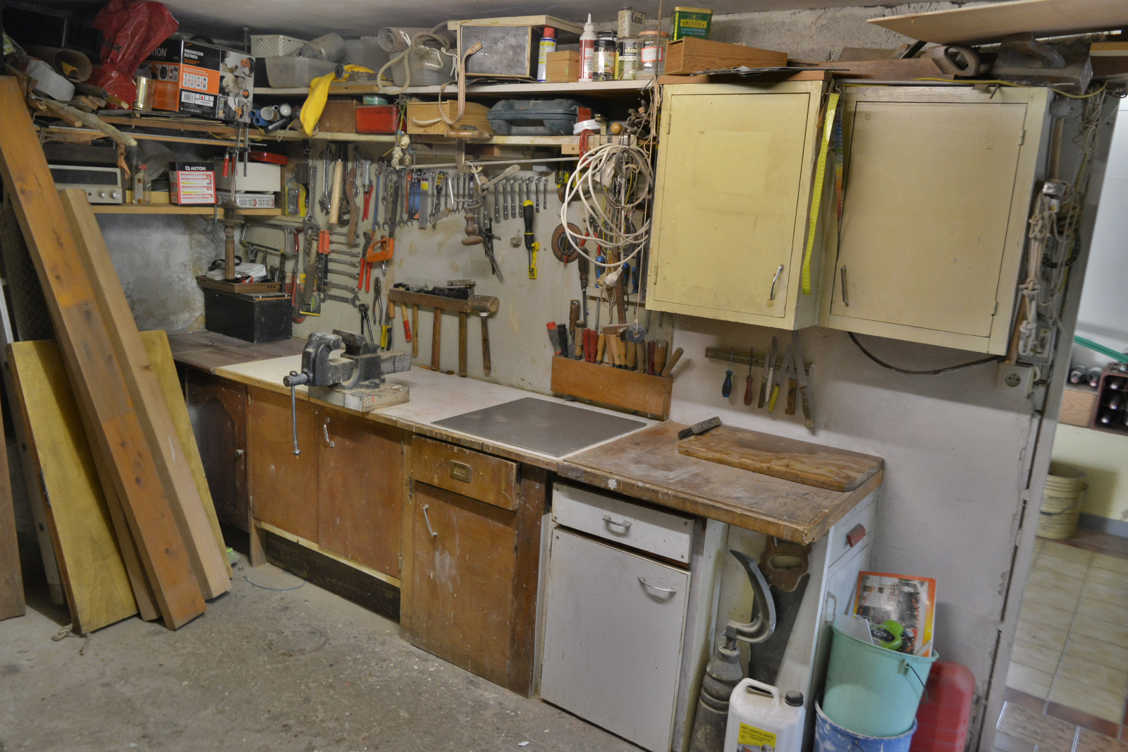 Au Rdc, un garage de 54 m² comprenant un atelier, une piéce annexe, une salle d'eau avec wc et un local chaudiére.
