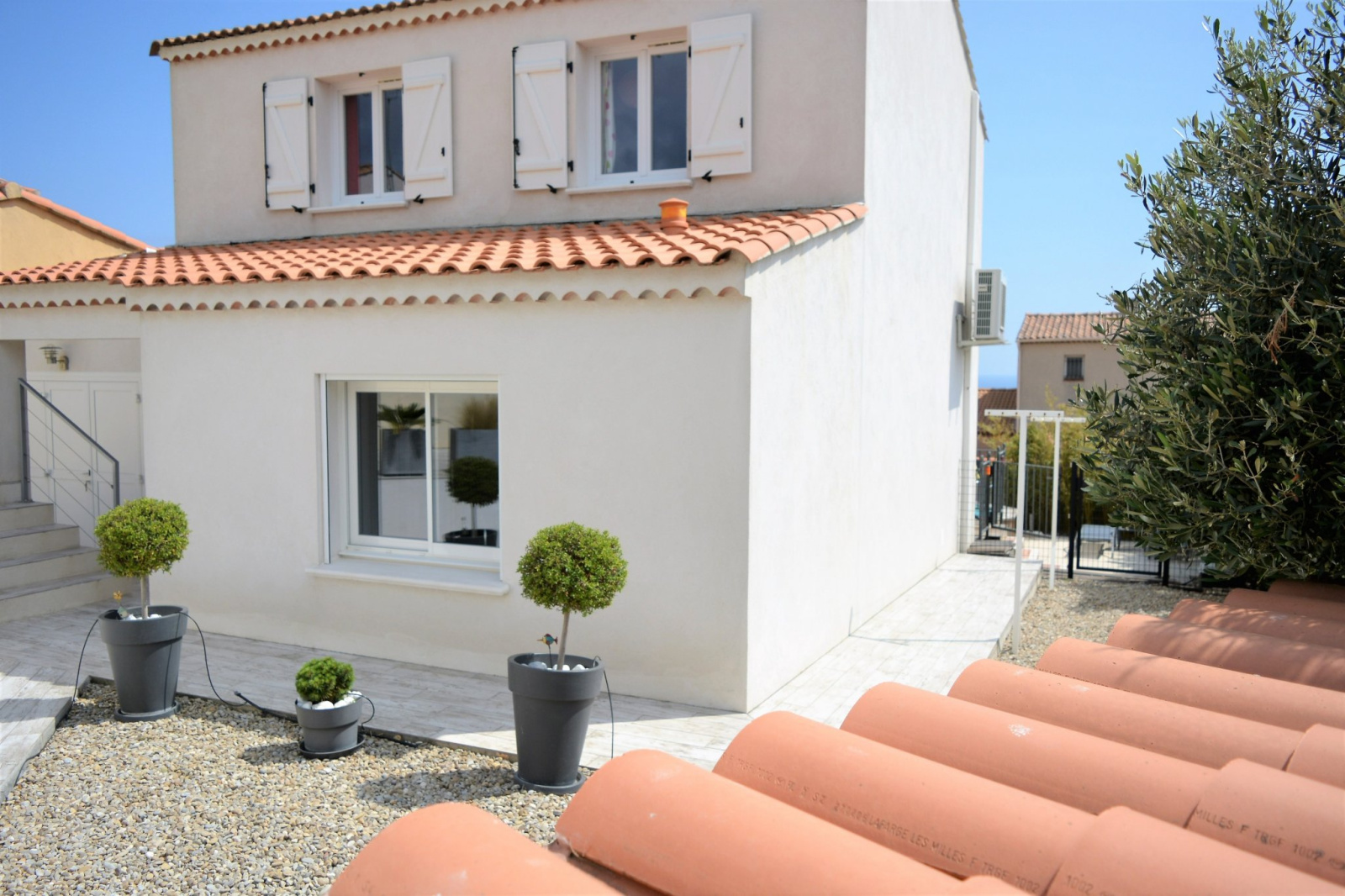 Villa très agréable, lumineuse, soignée, traversante Sud / Nord, mitoyenne côté garage, à proximité de toutes commoditées avec clim réversible, double vitrage et pouvant accueillir 2 /3 voitures.