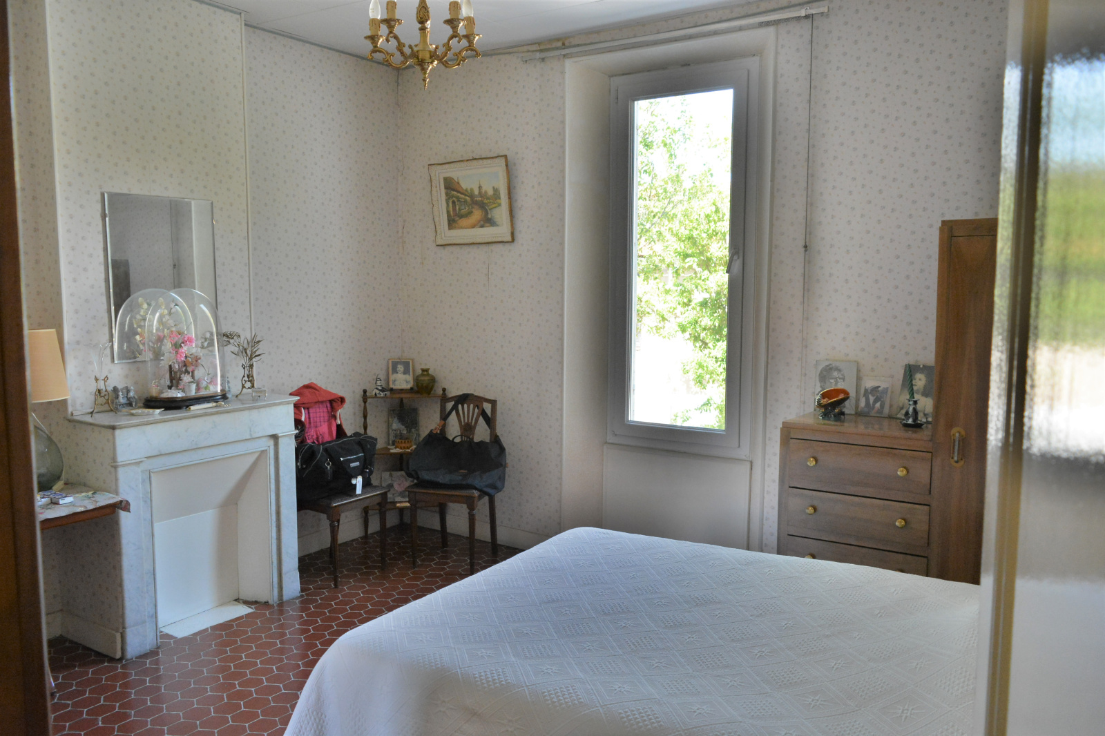 une vaste chambre de 15 m² avec cheminée en marbre, une buanderie ainsi qu' une salle de bain et un wc séparé.